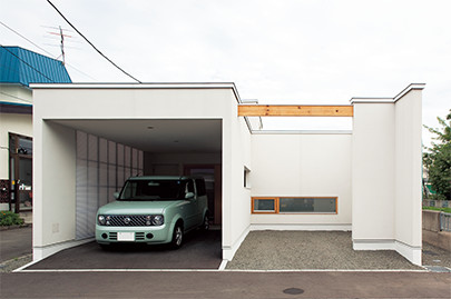間口9m奥行27mの細長い敷地に「バリアフリーの家をつくってほしい」と、依頼を受けた。クライアントはご夫婦2人で、要望は足が不自由な奥さんに合わせた機能的な配慮と、だからといってそれらが全面的に現れるようなデザインにはならないようにすること、そして何より「楽しい家」だった。